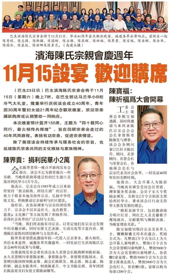 15/11 庆祝成立第40周年, 青年团第30周年暨妇女组第21周年纪念晚宴